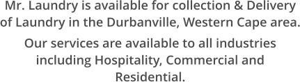 Mr. Laundry is available for collection & Delivery of Laundry in the Durbanville, Western Cape area.